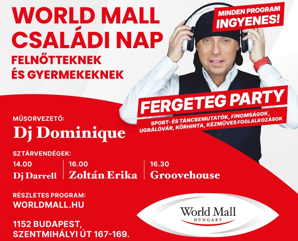 Május 18-án, vasárnap, a World Mall egy igazán különleges napra várja a családokat. A bevásárló-, élmény- és szórakoztatóközpont az egész napos rendezvény során változatos programokkal, bemutatókkal és fellépőkkel biztosít minden korosztály számára felejthetetlen élményeket.