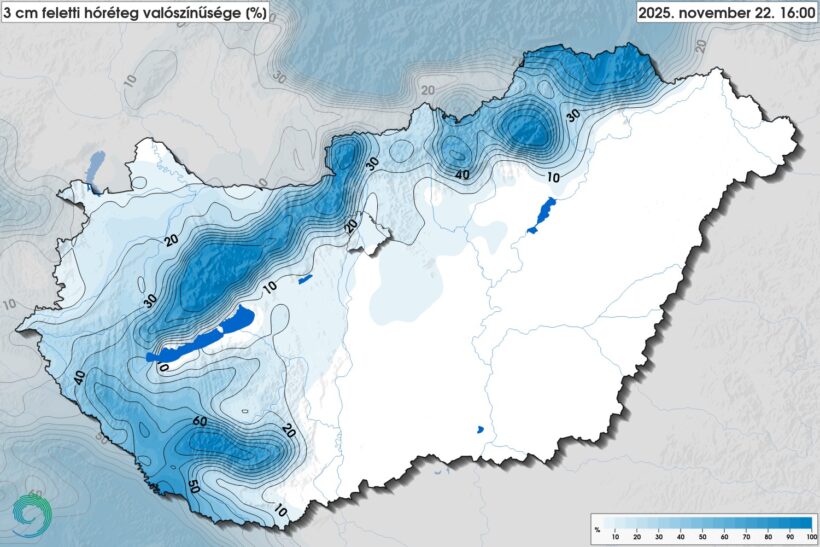 Nagyobb területen alakulhat ki pár cm-es latyakos hóréteg, az Északi-középhegységben lehet a legvastagabb a hótakaró.