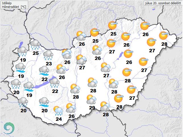 A legmagasabb nappali hőmérséklet többnyire 27 és 34 fok között alakul, de a tartósabban csapadékos dunántúli tájakon 25 fok alatt maradhat a hőmérséklet – közölte a met.hu.
