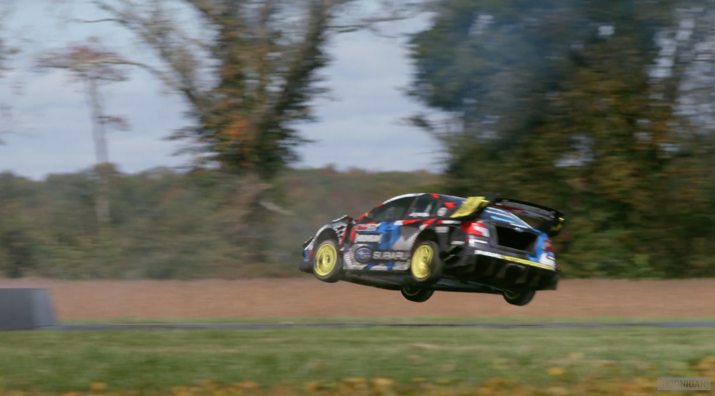 Most nem Ken Block vezet, hanem Travis Pastrana keni nagyon oda a közel ezer lóerős Subarunak.