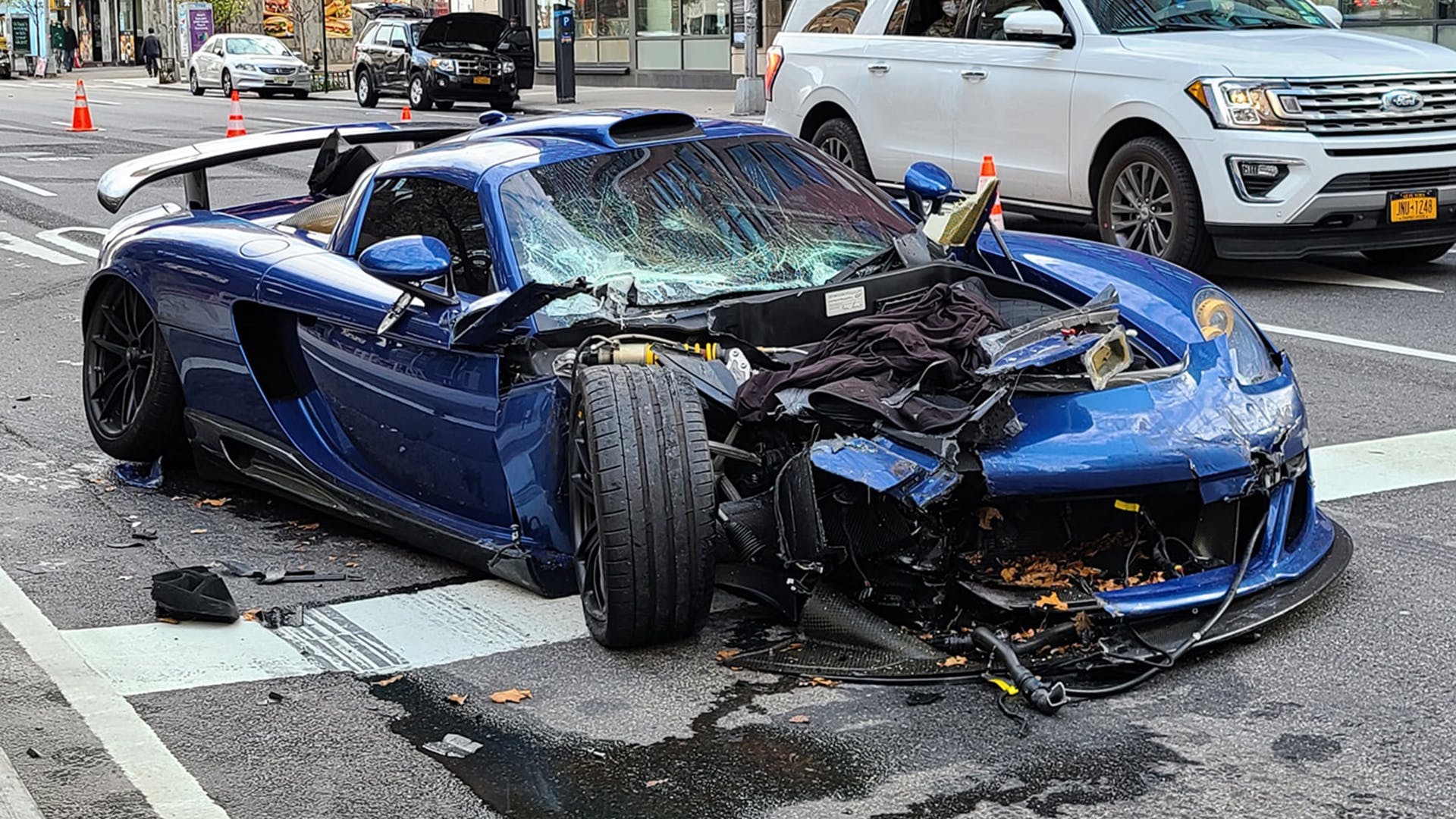 A Gemballa által tuningolt Porsche Carrera GT-ből mindössze 25 darab készült, az egyiket most öt másik parkoló autóval összetörte a bedrogozott tulajdonos.