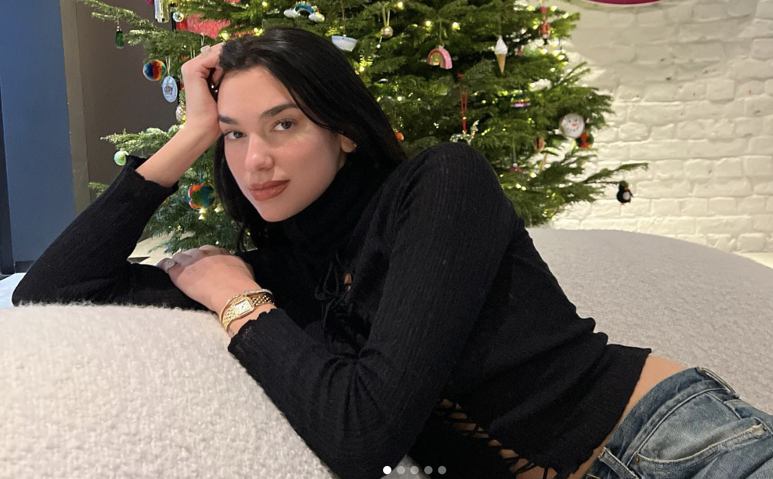 A kivágás a művésznő ruháján láthatóan arra játszik, hogy az alsónemű jól látszódjon.