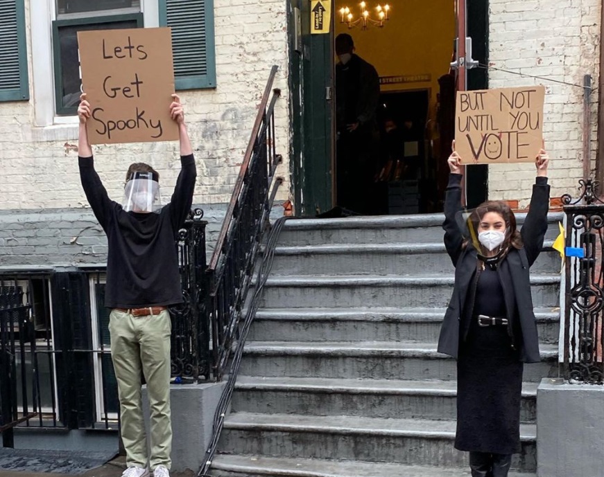 A színésznő Seth Phillips-szel, azaz "Dude with a sign"-nal emelte magasba tábláját.