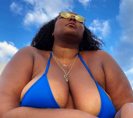 A 31 éves énekesnőt cseppet sem zavarja, hogy alkata nem igazán Hollywood-kompatibilis, boldogan lubickol cérnabikinijében.