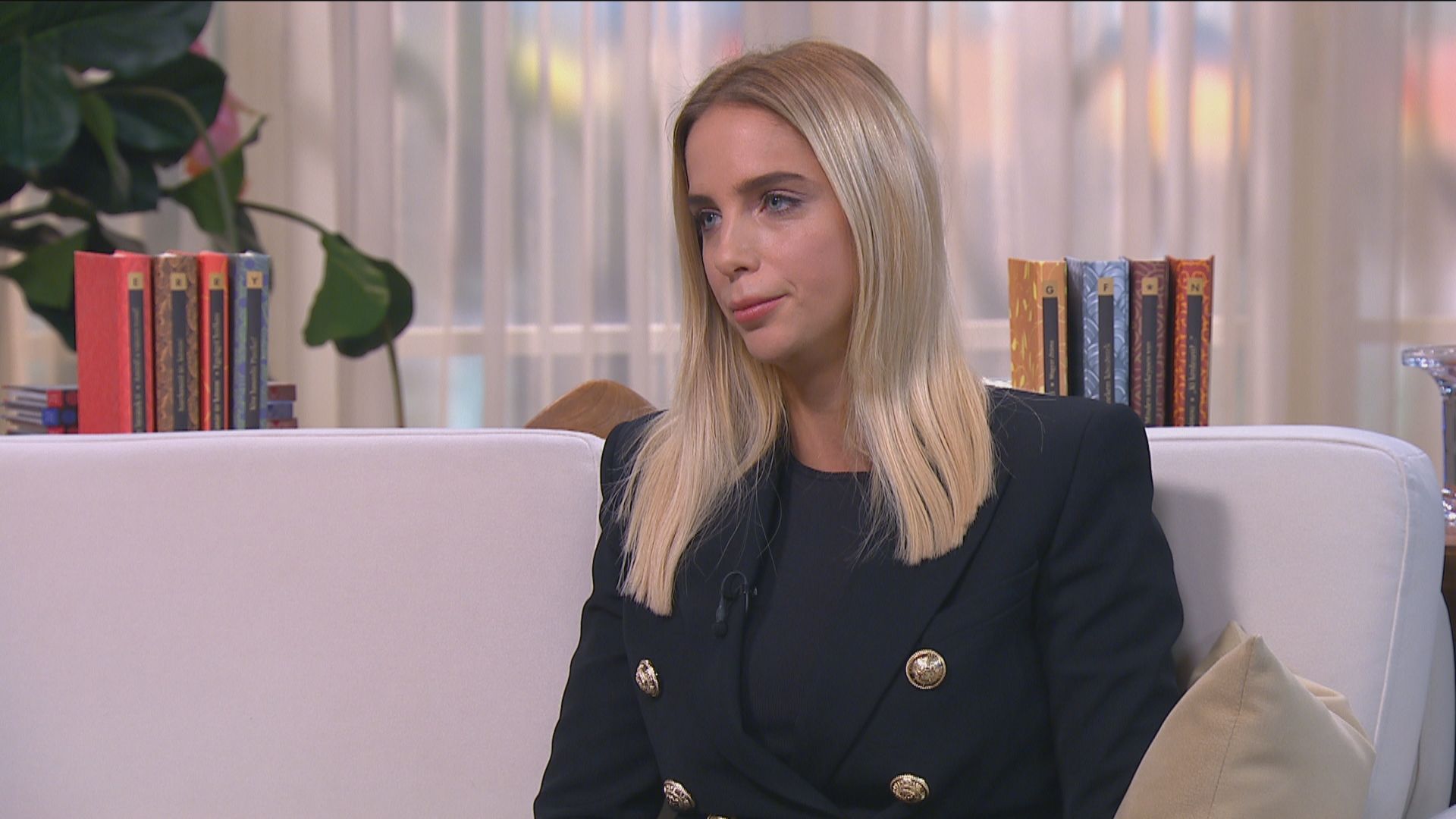 Láthatóan elégedett a keblei méretével és halmazállapotával.