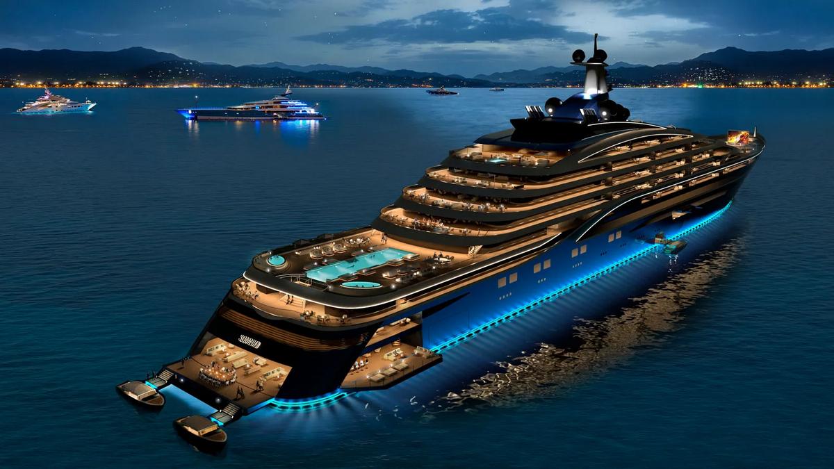 Ez a 600 millió dolláros, 728 láb hosszú jacht lesz a világ első magánrezidenciákkal rendelkező szuperjachtja, és 39 ultra luxuslakást kínál majd, amelyek darabonként 11 millió dollártól indulnak.