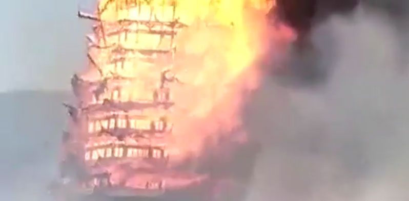 A Ming-dinasztia idejében épült kínai fatemplom 4 órán keresztül lángolt, a tűzoltóknak nem sikerült eloltaniuk.