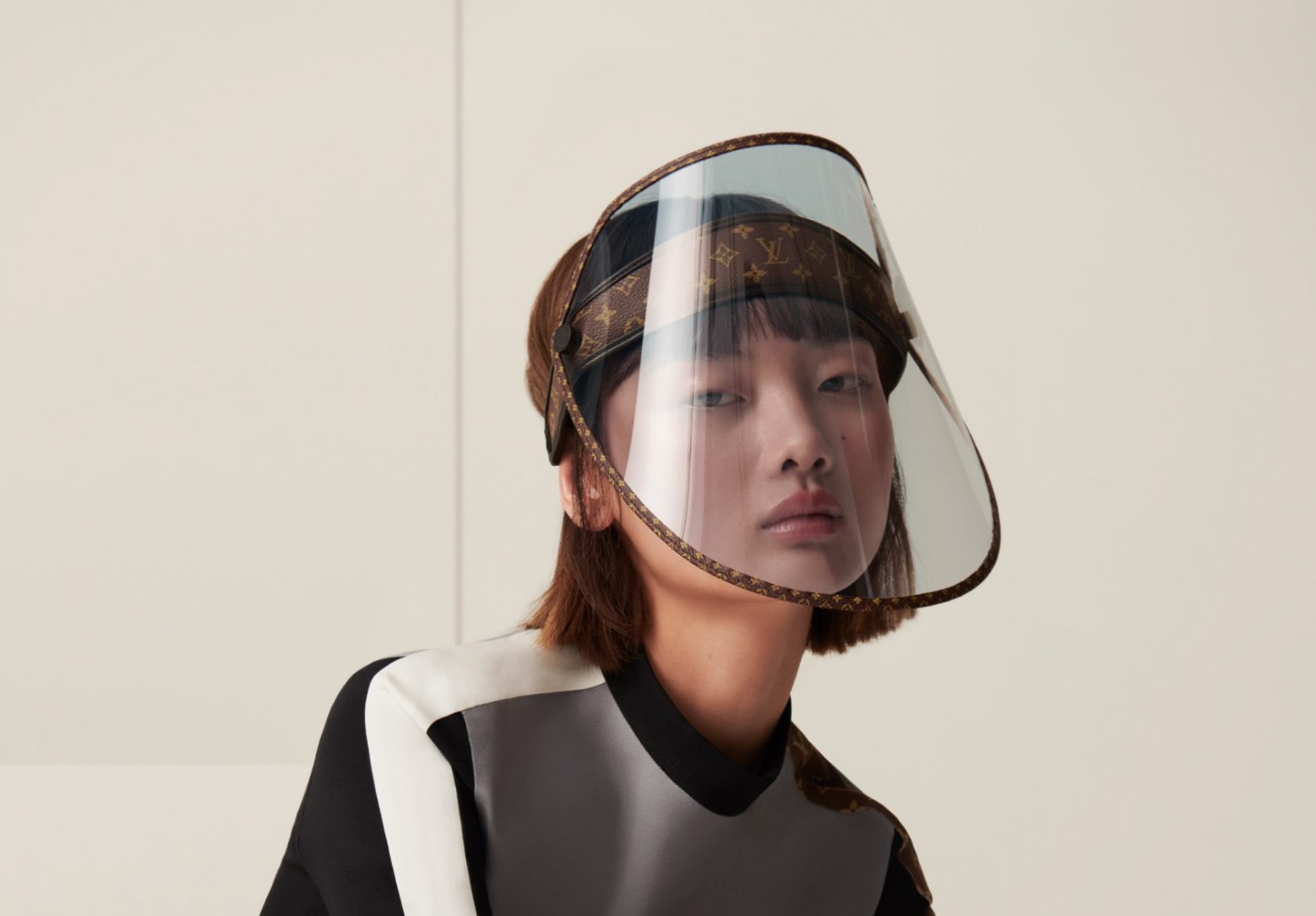 A francia Louis Vuitton divatház egy speciális arcvédőt tervezett, természetesen LV monogrammal, amely akár felfelé is fordítható és napellenzőként használható.