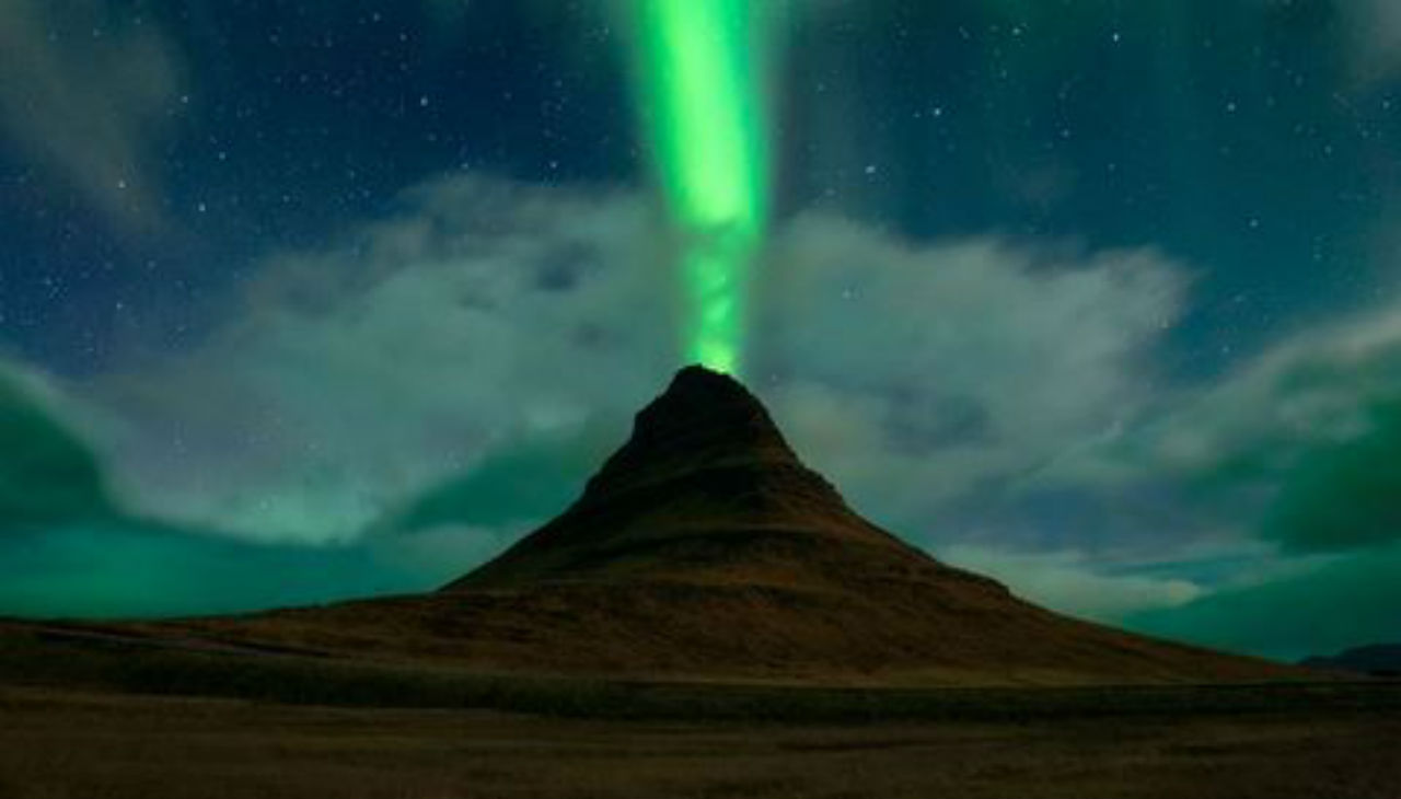 A sarki fényt kombinálta a vulkánnal a fotós, az állunk leesik.