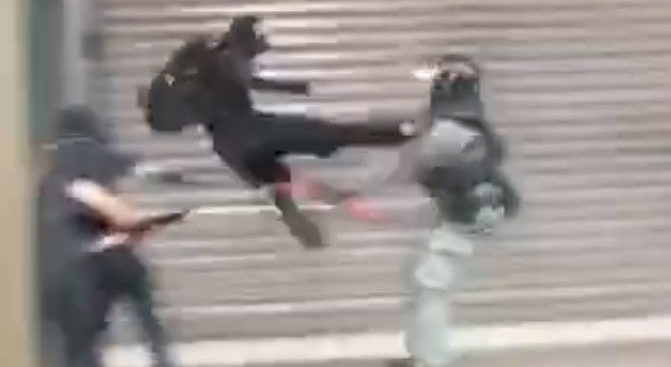 Nincs könnyű dolga a rohamrendőröknek. Repkednek a flying kickek az utcán.