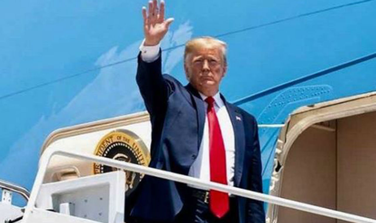 A golfozó elnököt ábrázolja a kép, akinek vízbefúlt menekültek kerülnek az útjába.