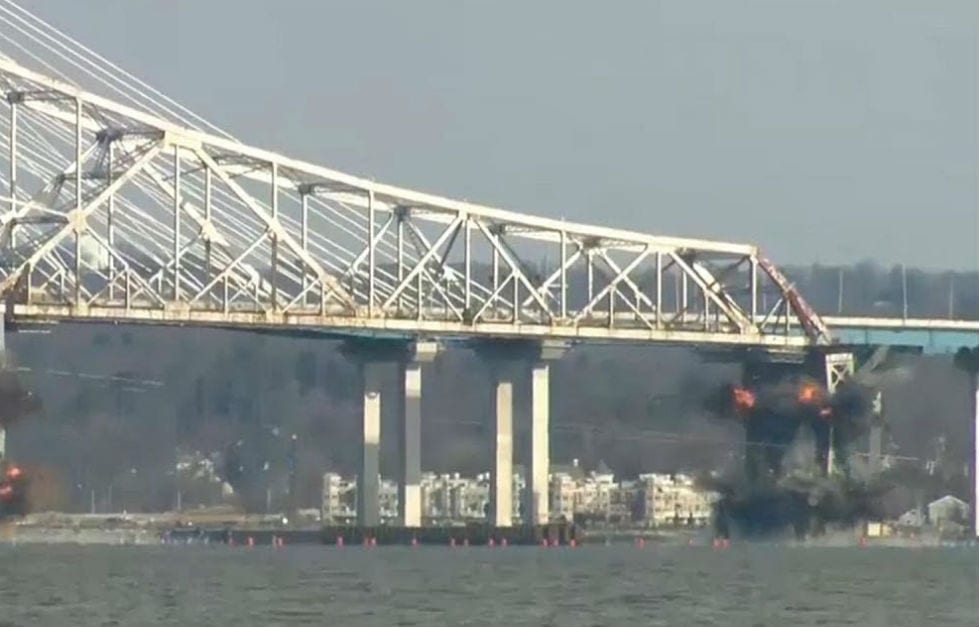 A két szigetet összekötő átkelő maradványai a tengerbe zuhantak.