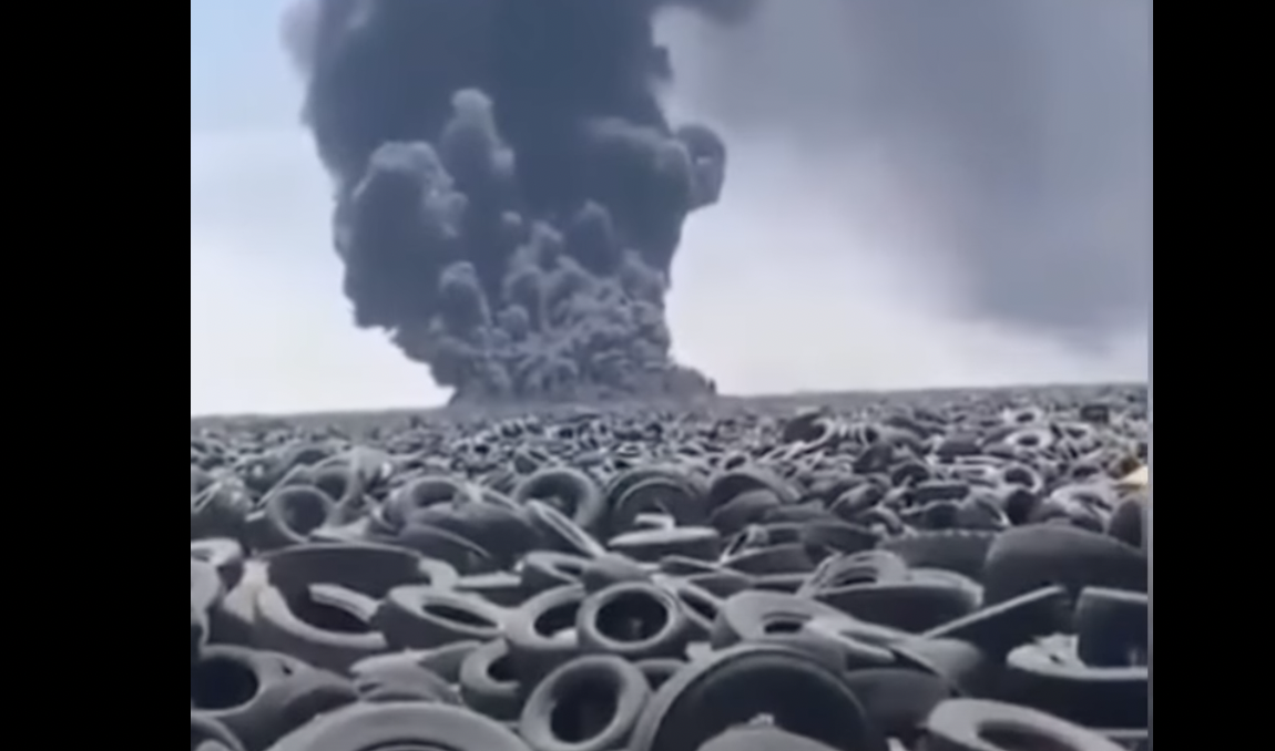 Mintegy hétmillió használt autógumit tárolnak abban a kuvaiti gumiabroncstemetőben, ami a minap kigyulladt. A légszennyezettségre gyakorolt hatás katasztrofális, maga a látvány is pokoli....