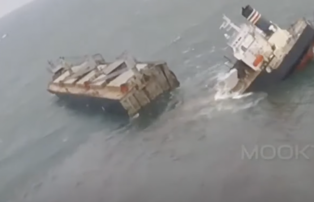 Zátonyra futott egy 40 ezer tonnás panamai teherszállító hajó a japán Hachinohe kikötőjének közelében. A faforgácsot szállító vízi járművet a kegyetlen vihar egyszerűen ketté szakította.