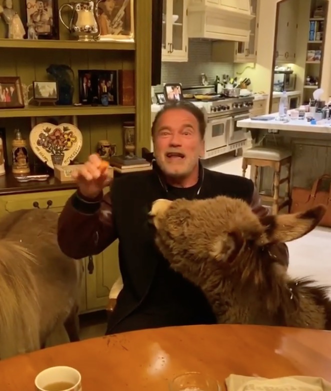 A Terminátor egy szamár és egy póni társaságában mondta el, hogy mindenkinek otthon kéne maradnia.