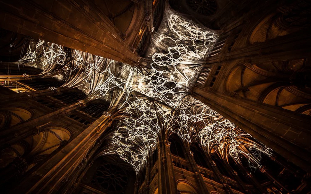 Így se láttunk még csúcsíves templomhajót, Miguel Chevalier egy virtuális valóságot installált a boltozatra.
