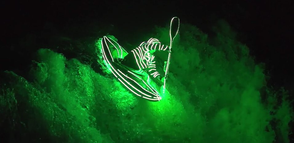 Brendan Wells magára és a csónakjára tekert pár méter LED-et, és elment vadvízi evezni.