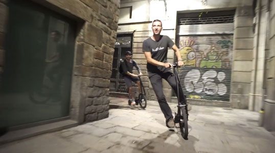 A Halfbike nevű járműben elől egy nagyobb, hátul pedig két kisebb kerék van.