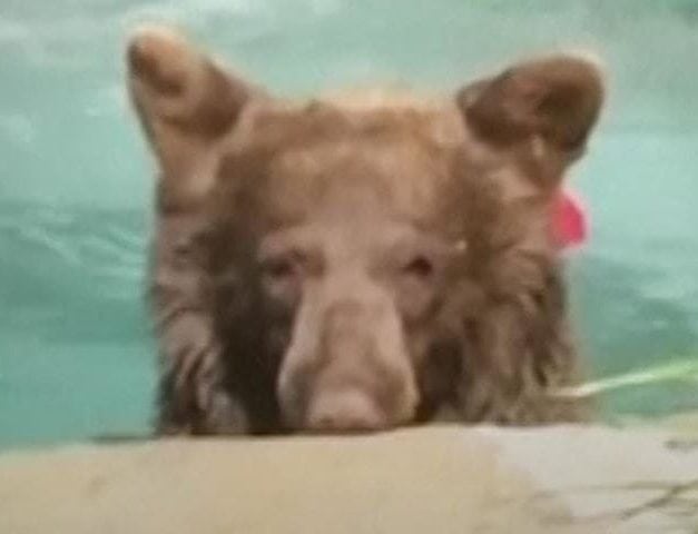 Ez az amerikai medve úgy gondolta, mártózik egyet a medencében.