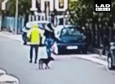 A LadBible oldalán jelent meg a felvétel, amin jól látszik, hogy egy férfi a bevásárlószatyros nő után iramodik, és csak a kutya lélekjelenlétén múlik, hogy nem fosztja ki...