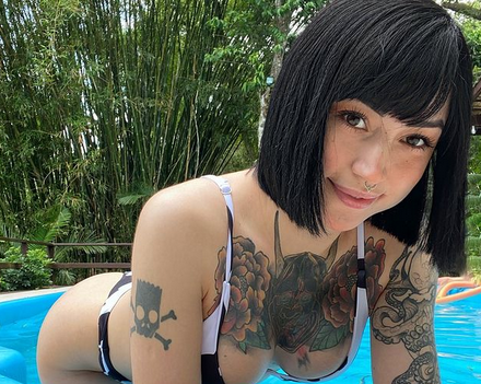 A japán származású, jelenleg Brazíliában élő Kerolain Dawud tetoválásai talán nem a legjobban sikerült műalkotások, de a bombatest kárpótolja az embert a túl sötét mellkastetkóért és a kidolgozatlan varrásért a hason. Dögös csaj, annyi szent. Vagy ör