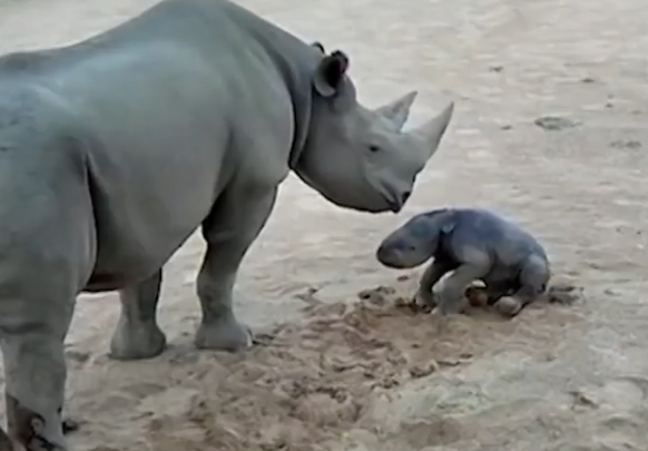 Igazán zabálnivaló felvétel került elő a Taronga Western Plains Zoo állatkert mindennapjairól. Az frissen világrajött rínó első lépéseivel próbálkozik.