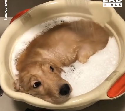 A kutyák általában nem igazán kultiválják a fürdést, de szerencsére akadnak kivételek. Ez a blöki például imádja, ha meleg vízben heverészhet, és közben a zuhanyrózsa dögönyözi.