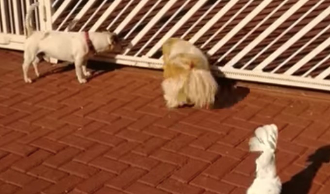 Ez történik, ha kutyák közé kerül egy kakadu.
