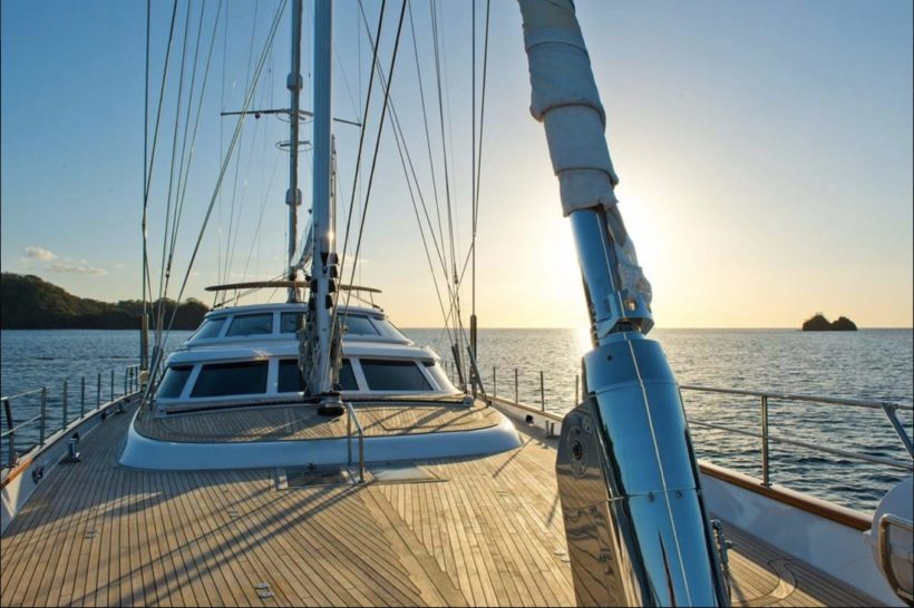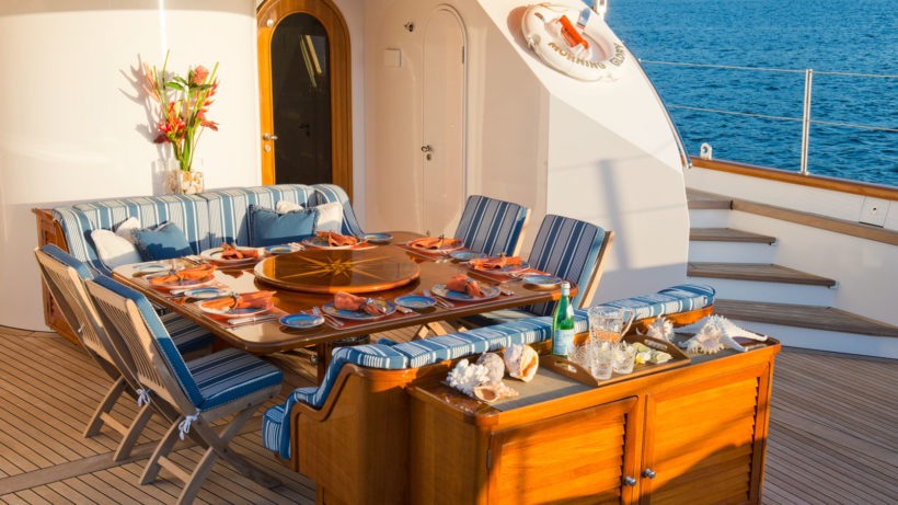 48 méter hosszan nyúlik el a Morning Glory a végtelen tengeren, ameddig mi hátul az asztalnál ülünk és akár 4900 tengeri mérföldet is megtehetünk.