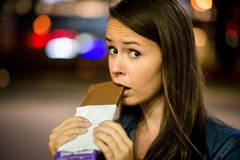 Komoly a hír! Ha egy kis kocka csokit 20 perccel étkezés előtt hagyunk elolvadni a nyelvünkön, akkor az agyunkban olyan hormonok szabadulnak fel, amelyek a jóllakottság érzetét közvetítik. Így biztosan kevesebbet fogunk enni. Ha evés után ugyanígy cselekszünk, elkerülhetjük a felesleges nassolást is.