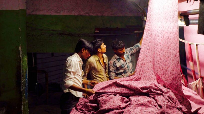 Lélegzetelállító képsorok mutatják meg, milyen Gujarat labirintusszerű, hatalmas textilüzemében dolgozni. A férfiak és fiúk festéket kevernek és kemencét fűtenek. Ha van egy rövid pihenőjük, akkor lerogynak aludni egy köteg fehér szövetre, vagy bagót rágnak. Nincs szükség aláfestő zenére, csak a gépek zakatolnak ütemesen.