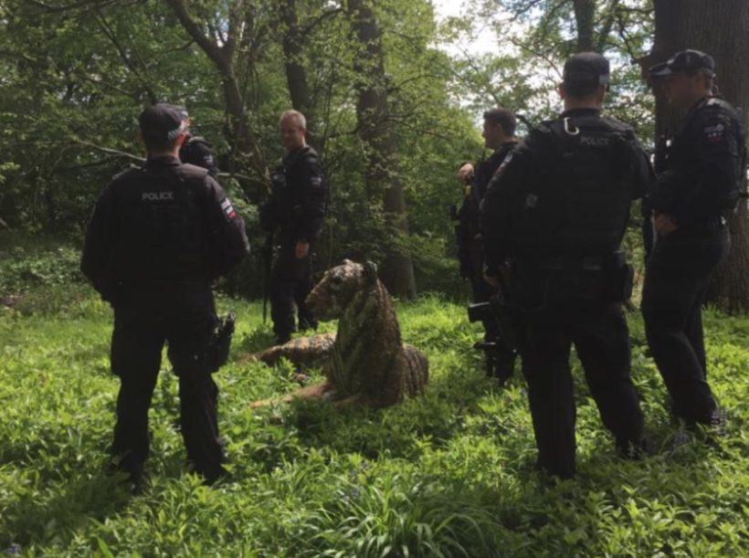 My Granny is a sculptress. Today 10 armed police and a helicopter were called to her house after walkers reported a tiger in the woods. This is the tiger. pic.twitter.com/Kn21npZPiS