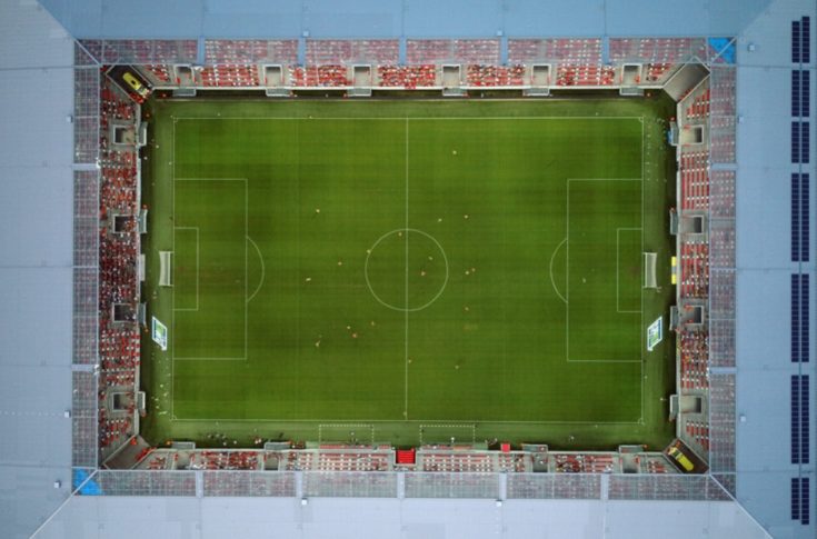 DVTK-stadion a Diósgyőri VTK – Mezőkövesd Zsóry FC mérkőzés közben. A DVTK új stadionját 2018 májusában adták át.